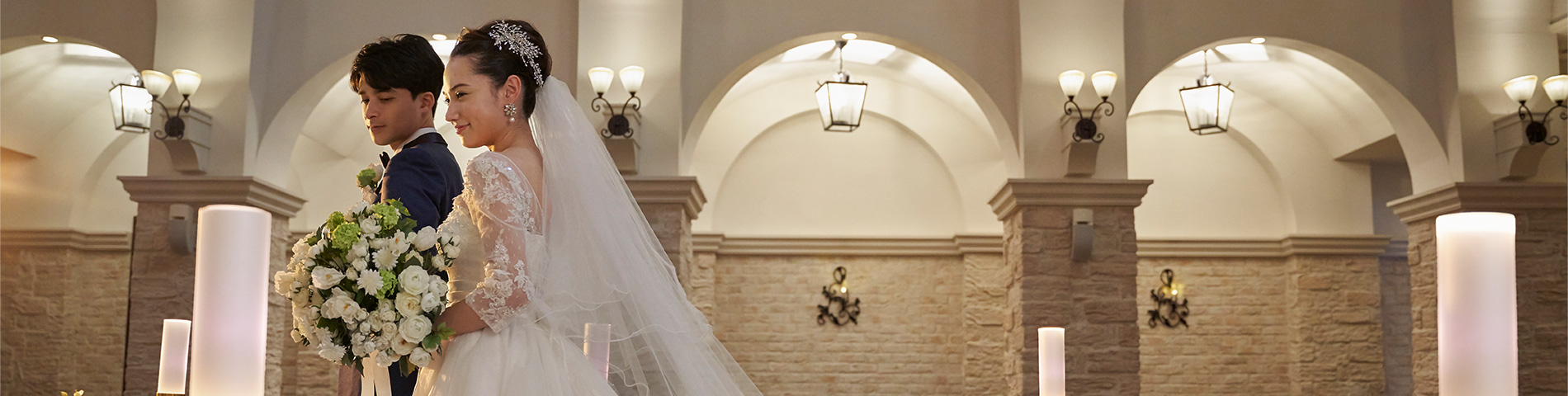 聖壇に立つ花嫁の美しい後ろ姿