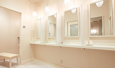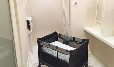女性ゲストに嬉しい、お化粧直しができるパウダールームをご用意。授乳室やおむつ交換台を備えたベビールームも併設しております。