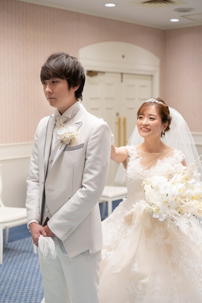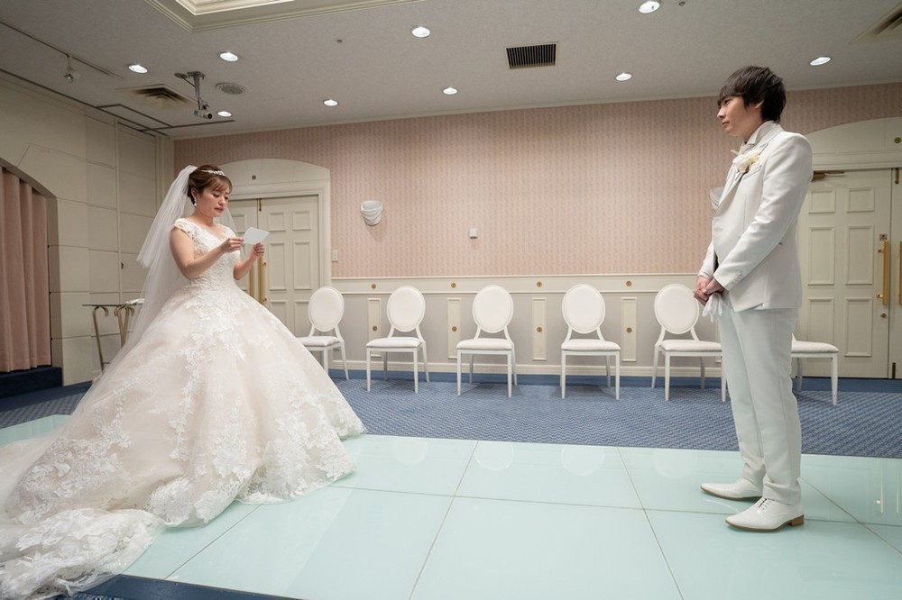 挙式前におふたりのファーストミート風の撮影がありましたが、その後にさきちょん様からつんつ~様へ、サプライズでお手紙が読まれました。