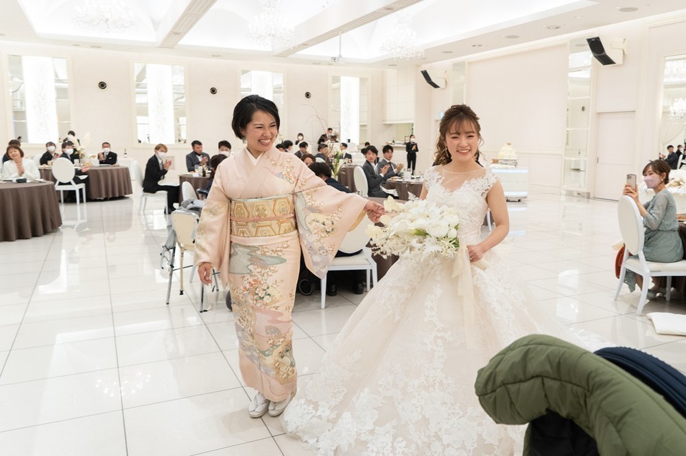 さきちょん様がチャペルにご入場なさる際には、お母様からのベールダウンがありました。