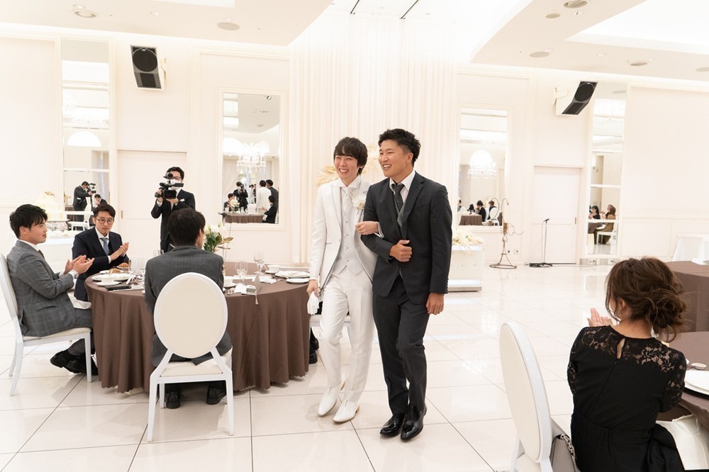 最後に披露された撮って出しのエンドロールの中には、中座の際にサプライズでご指名になったおふたりの、お呼び出し前からその瞬間までが収められており、突然の指名に驚く姿が盛り込まれた素敵な仕上がりになりました。