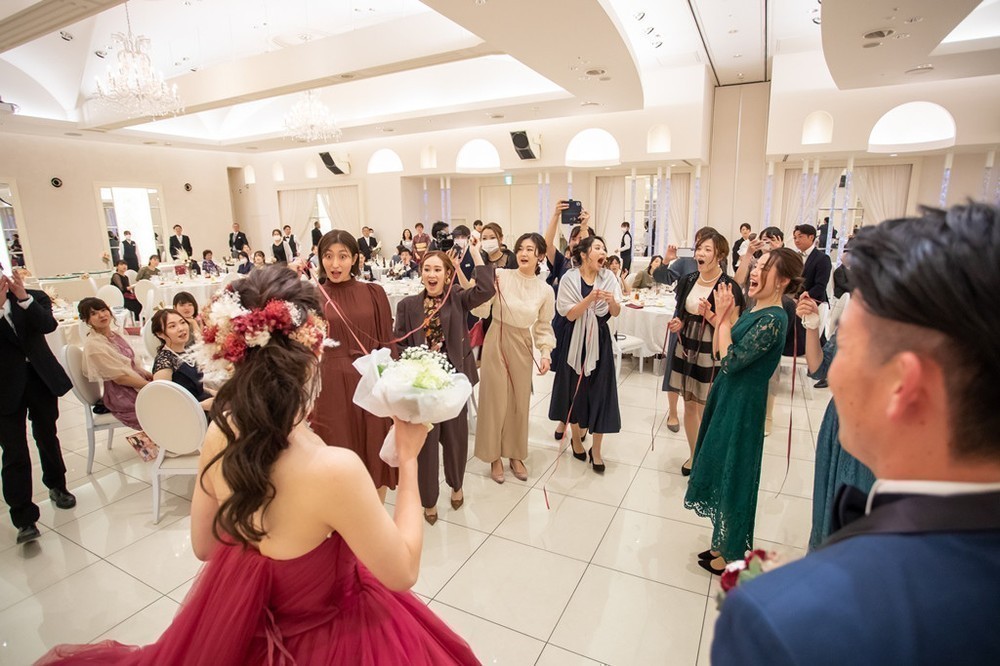 続いて行われたブーケプルズでは、当たらなかった人にもお菓子のブーケをプレゼントなさるという工夫がなされました。