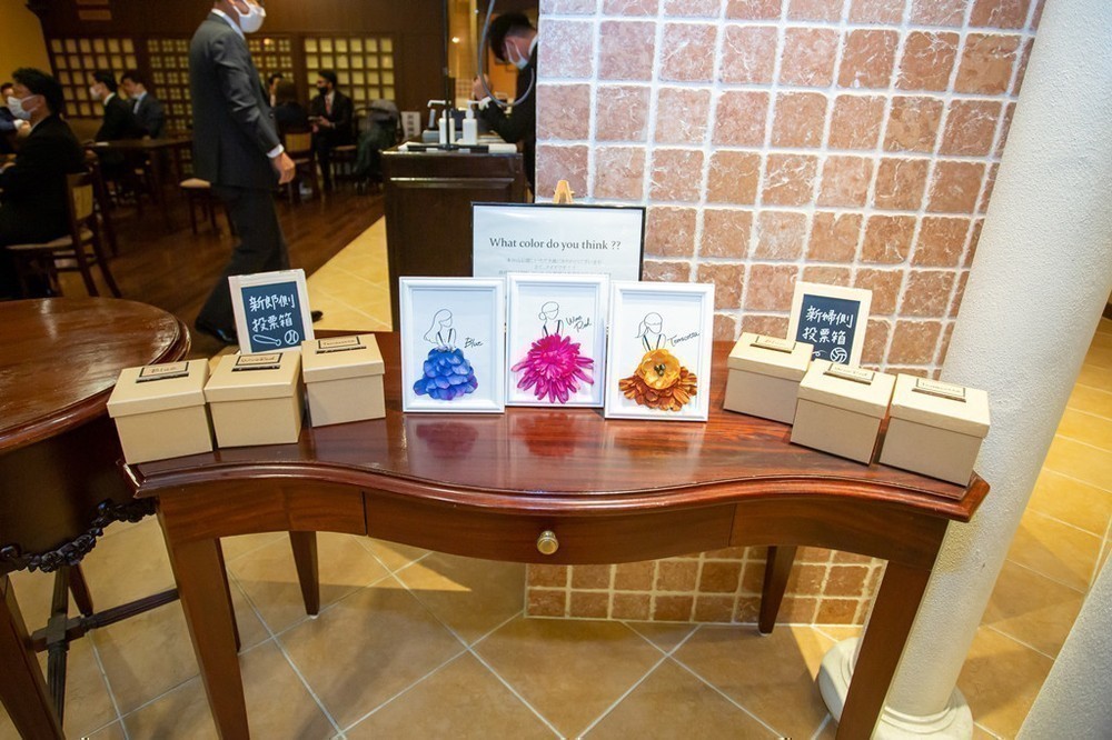 そして受け付け時にゲストが予想をしていた、カラードレスの色当てクイズに正解した方の中から、抽選で4名の方にプレゼントが贈られました。