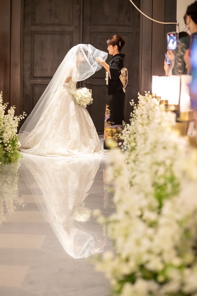 Y様のご入場は、ベールダウンはお母様に、エスコートをお父様にしていただきました。