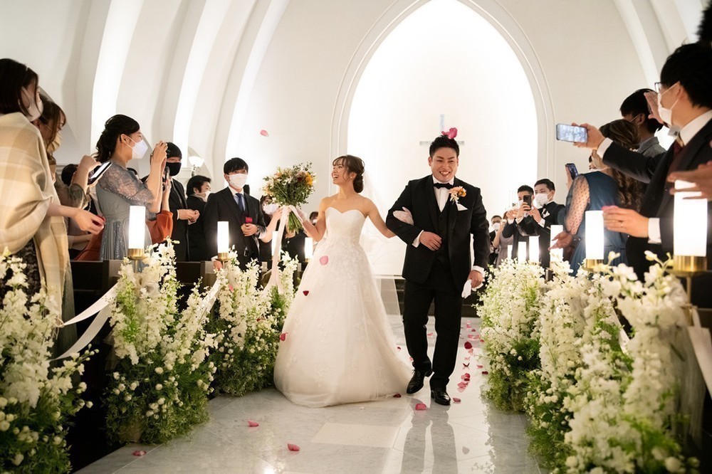 退場時、おふたりの晴れやかな笑顔がとても素敵でした♡