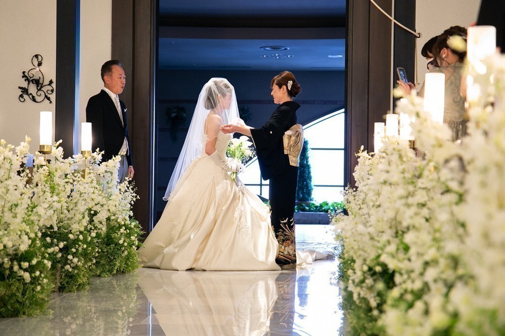 その後、新婦はお母様にベールダウンをしていただきました。
