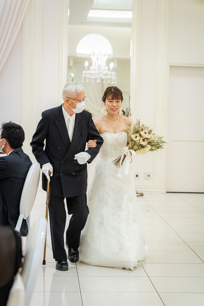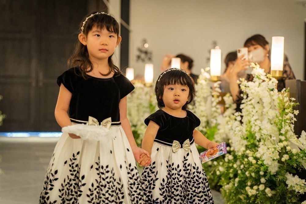 挙式では、M様がお母様にベールダウンをしていただいたり、リングガールをおふたりのお子様とY様の姪御様が務められるなど、家族の絆を感じさせる演出によってスタートしました。