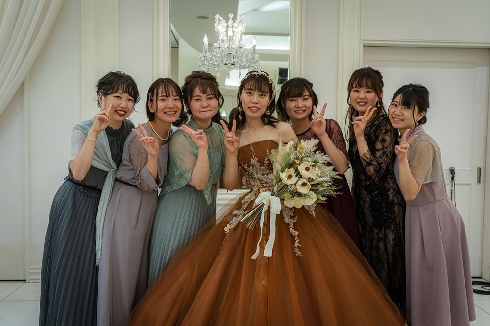 十分な広さがある会場(シエロ)では立って写真を撮ることができるため、華やかな衣裳全体を記念に残すことができるのがポイントです。
