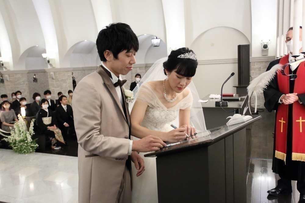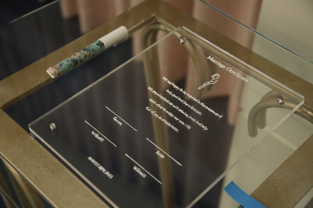誓約書は、透明感が美しいアクリルでおふたりが手作りされ、