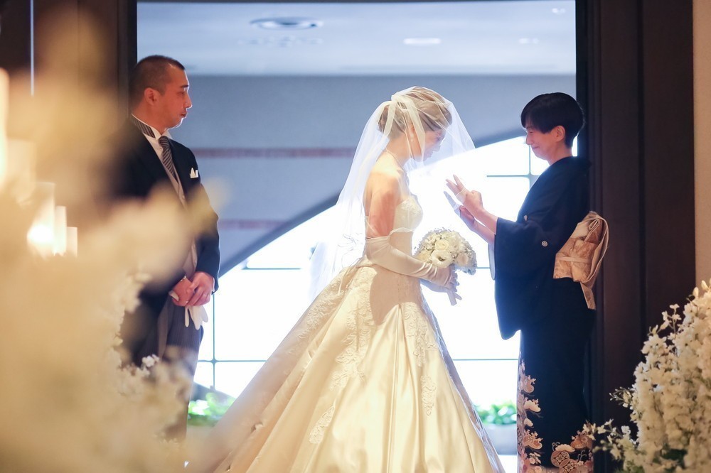 りほ様は、チャペル内でお母様にベールダウンをしていただき、