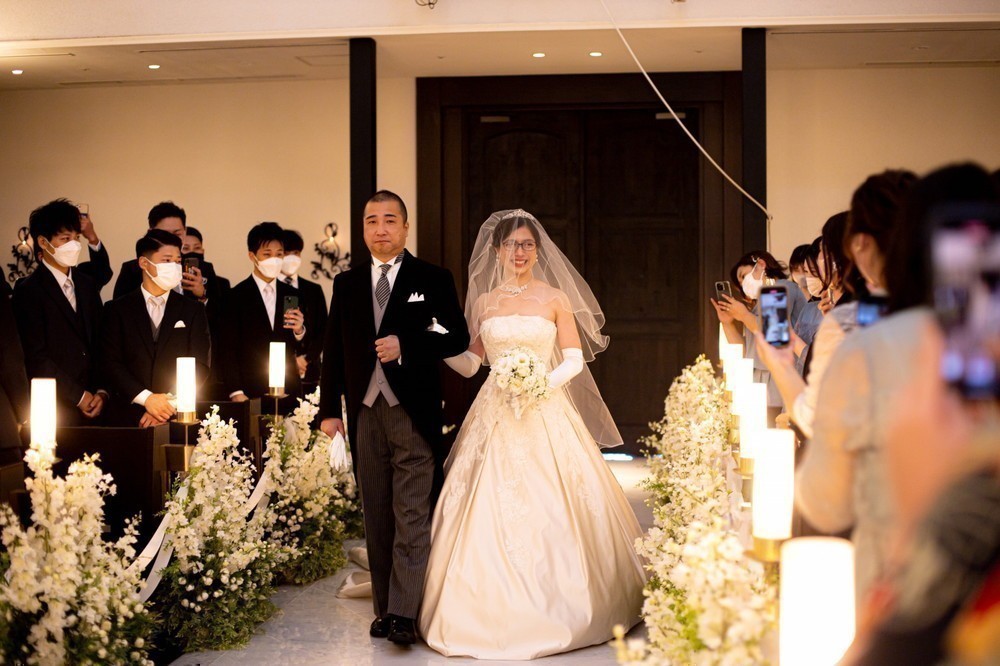 お父様と一緒にバージンロードを歩まれました。