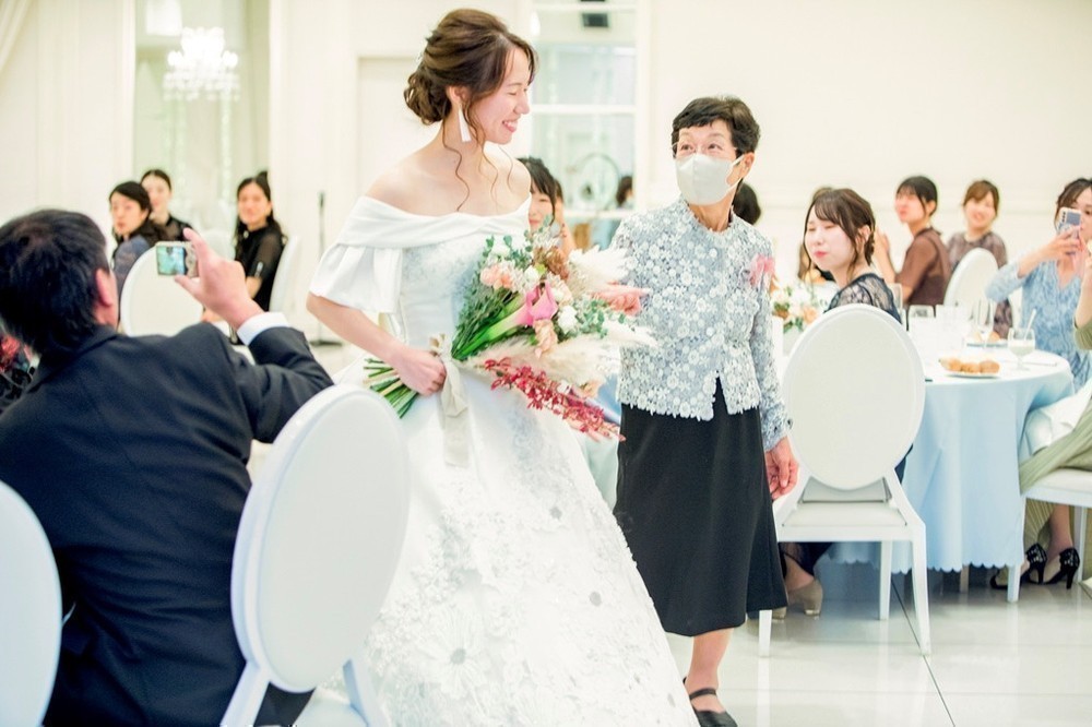 S 様の中座は、大好きなお祖母様と、K 様はお兄様にエスコートをしていただきました。