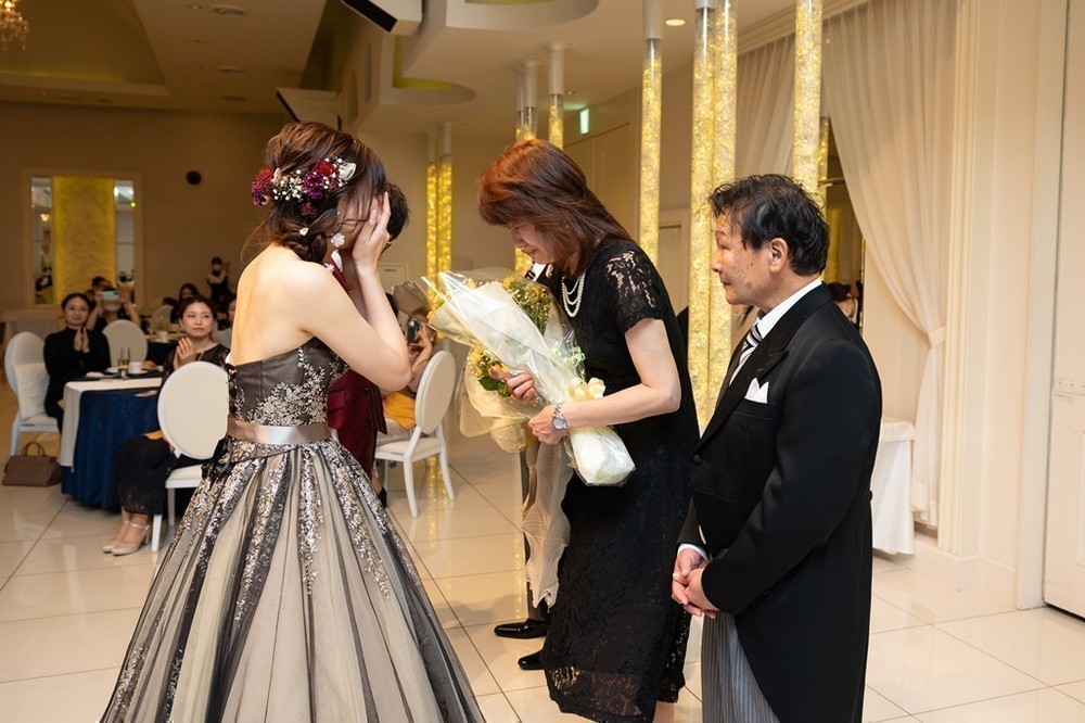 そして、りんちゃん様から親御様へのお手紙朗読、おふたりそれぞれの親御様へ記念品贈呈を行い、披露宴はフィナーレへ。