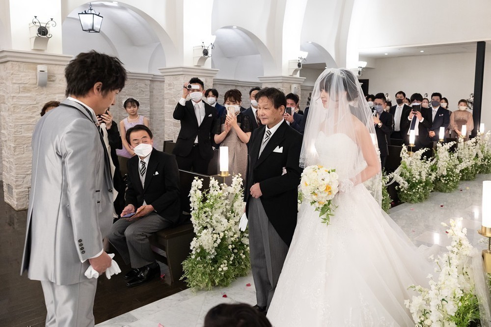 お父様とがんちゃん様が待つ祭壇へと一歩一歩バージンロードを歩みます。