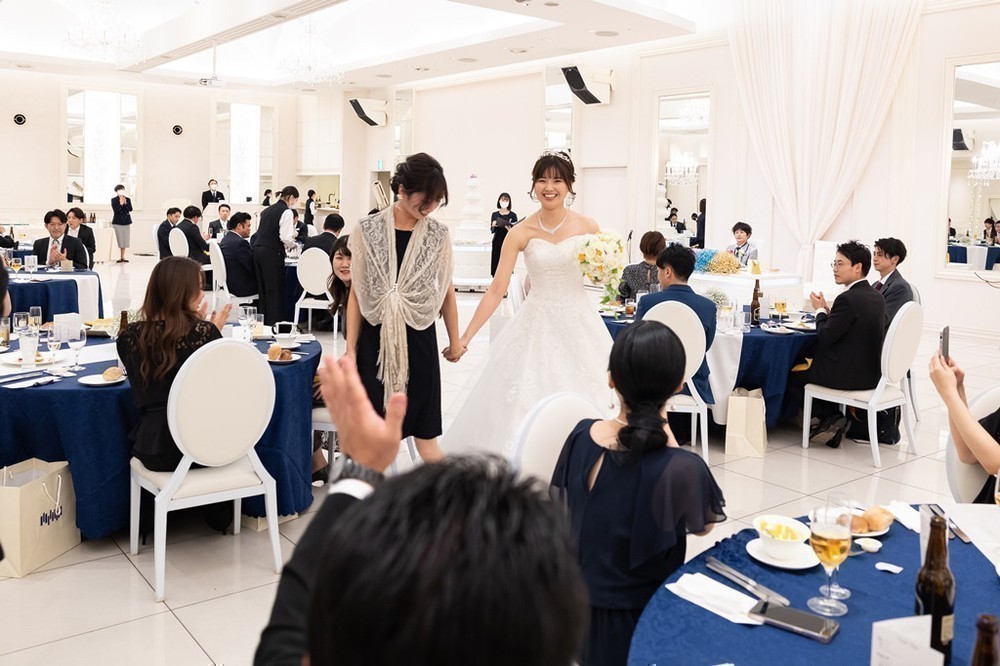 退場時にはおふたりとも幸せいっぱいの笑顔で、ゲストからの祝福の声にお応えになりました。