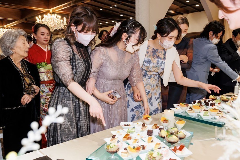 おふたりからのおもてなしのお気持ちを込めて、デザートブッフェではおふたりが直接ゲストにお渡しになられました。