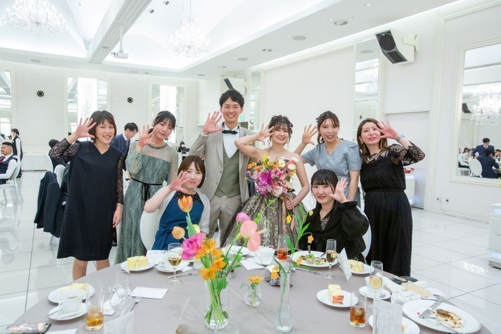 各卓写真ではポーズカードをゲストに引いてもらい、テーブルごとに違うポーズで撮影されました。