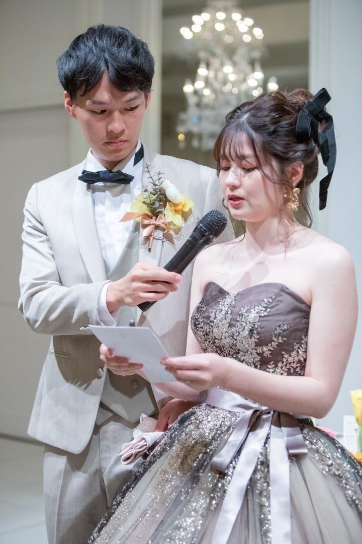 披露宴の結びはササ様より親御様へ感謝の気持ちを込めて花嫁の手紙をお読みになられました。そしておふたりで親御様へ花束を贈呈。