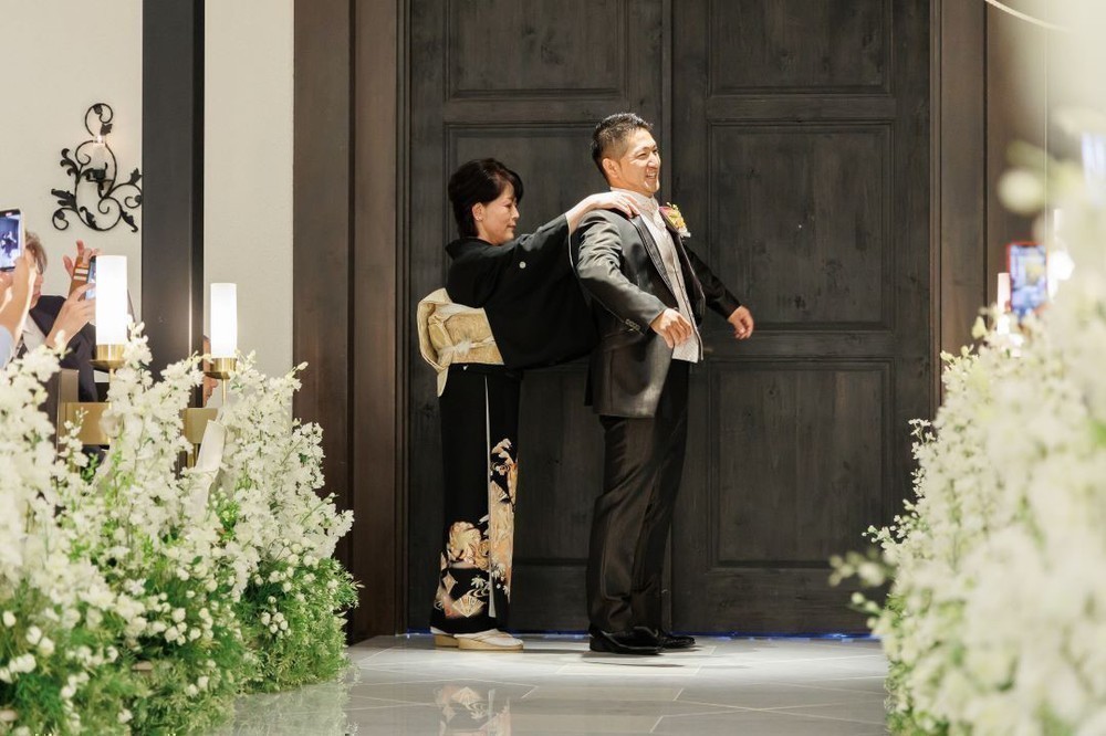 花嫁の手紙をお読みになられた後は、親御様へ花束と記念品のウェイトドールを贈呈されました。