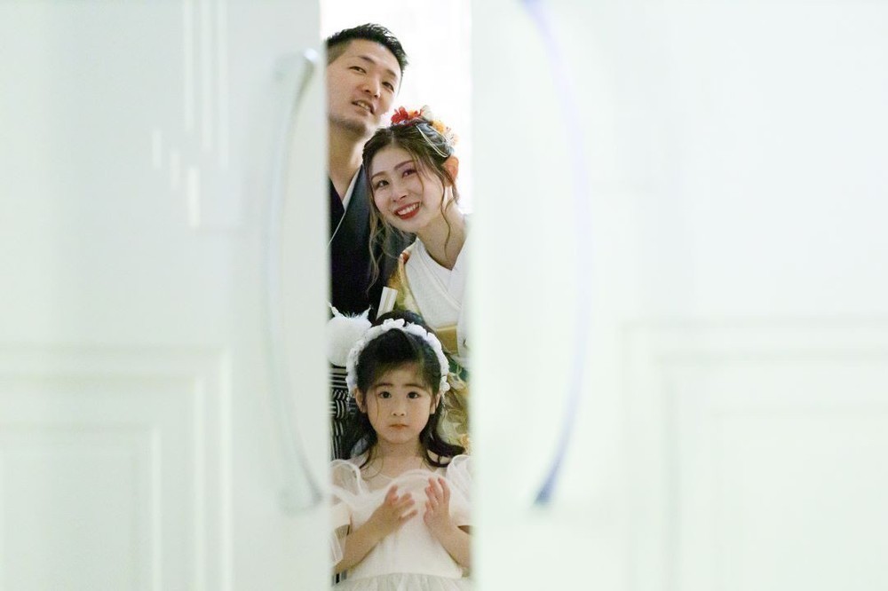 おふたりの間からお顔を出すお子様がとても可愛いですね♪