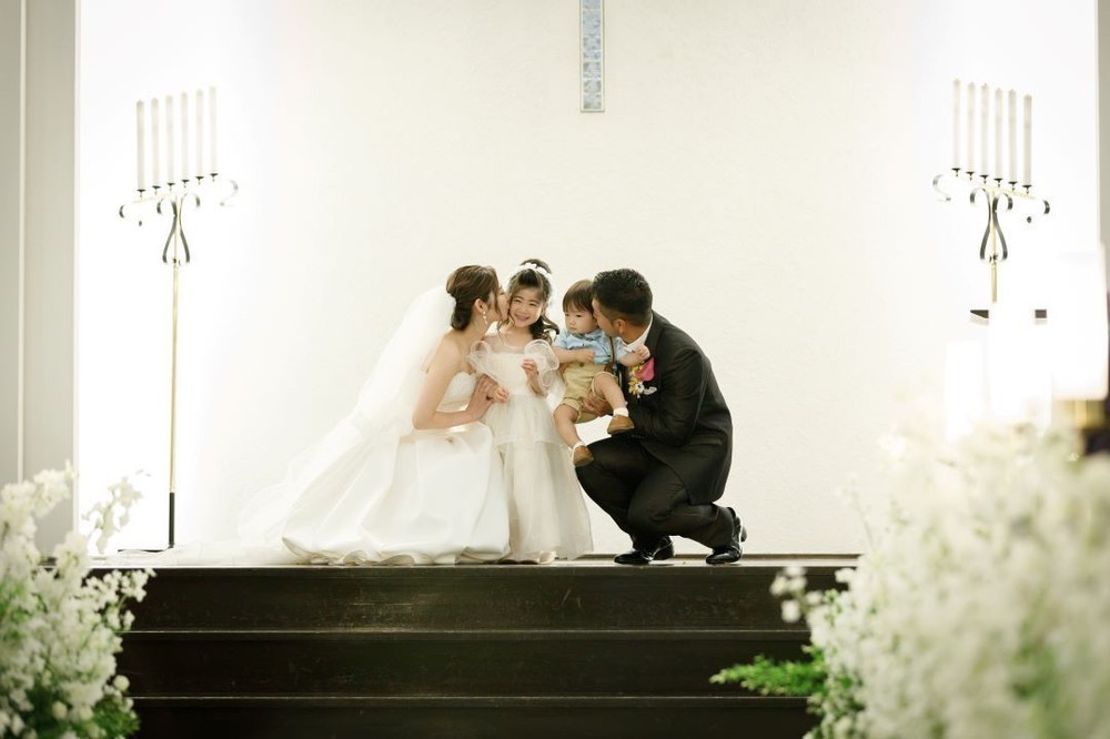 誓いのキスはお子様2人を挟んで行いました。