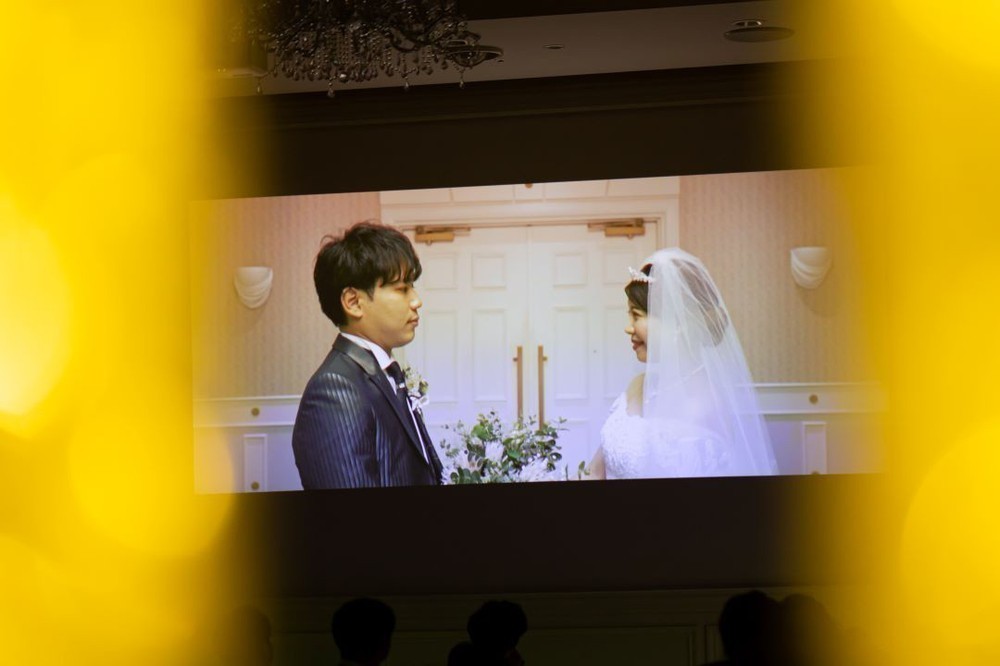 披露宴の結びにエンドロールを上映され、お見送りの際には「ありがとう」の気持ちを込めて