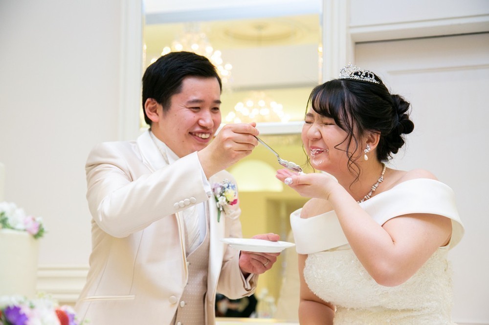 ファーストバイトでは、クリームをたっぷり顔につけて笑顔を見せてくださったよっちゃん様と、特大のひと口を一生懸命ほお張るふみ様の様子が、お互いの仲のよさを表現しているようで印象的でした。