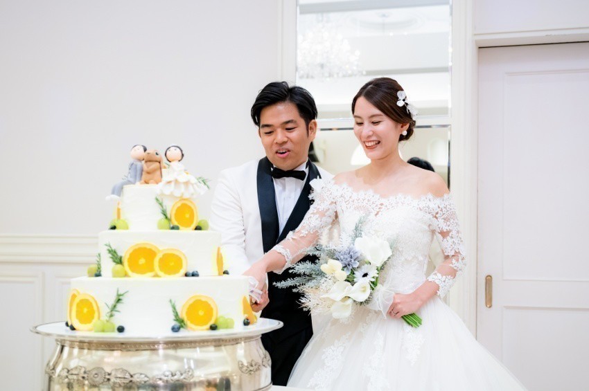 続いてはケーキ入刀とファーストバイトセレモニーです。