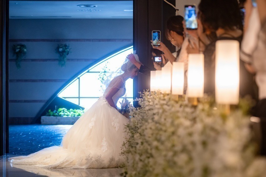 退場の際はゲストの皆様からの祝福を受け、笑顔が溢れるR様とH様でした。