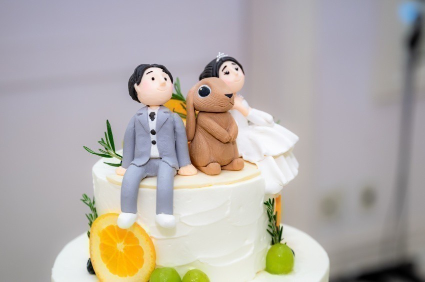 ウェディングケーキの上段にはお二人と飼っているウサギをイメージしたマジパンを用意されました。