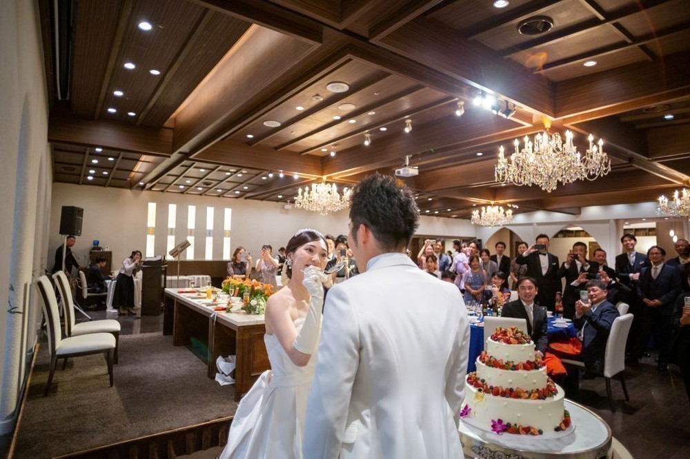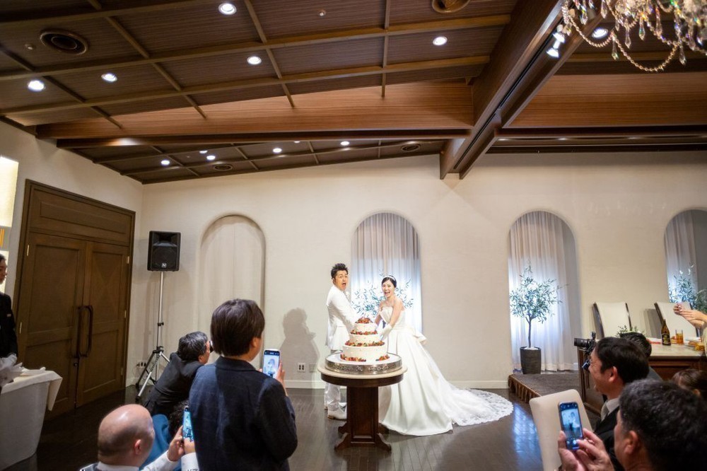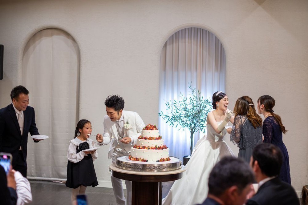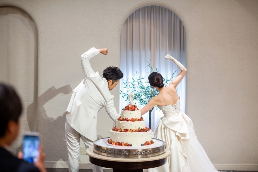 ケーキ入刀は某筋肉芸人でおなじみの曲に合わせてパフォーマンス!