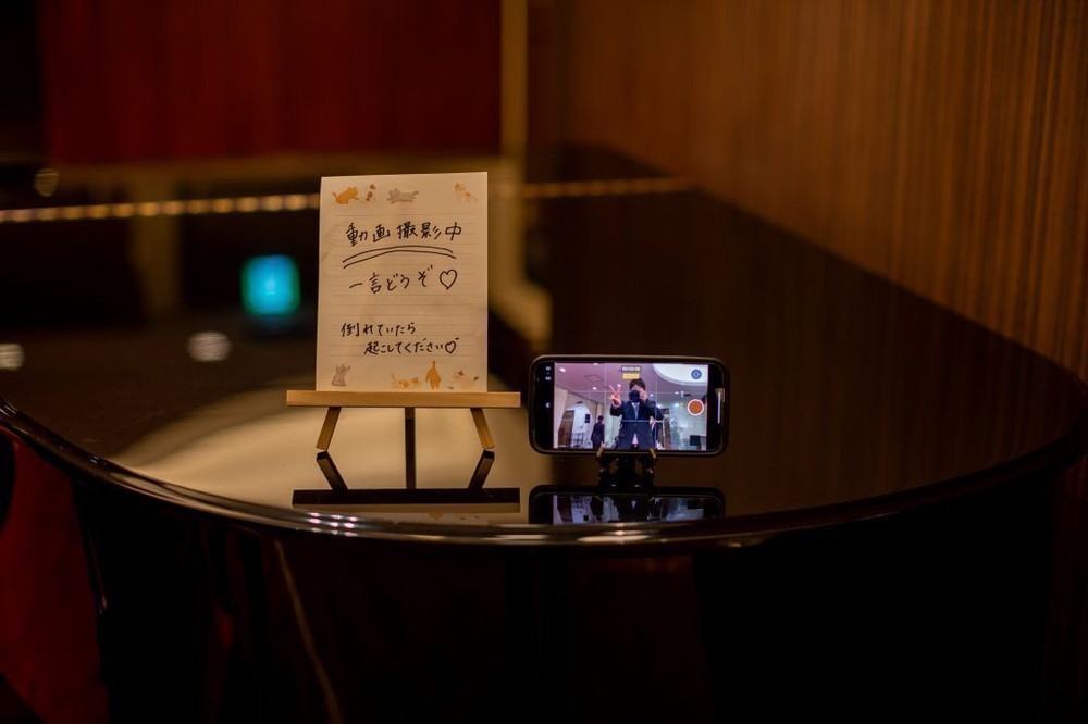 会場内にはカメラを設置し、ゲストから祝福のメッセージをいただきました。