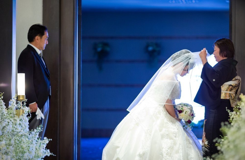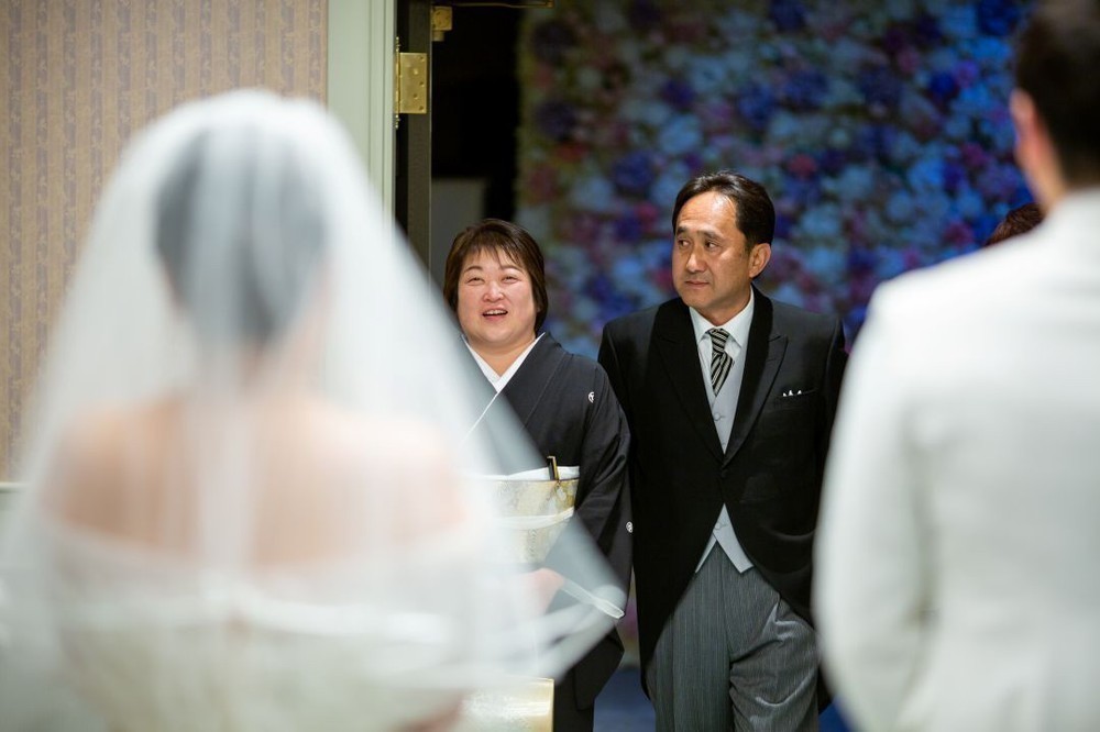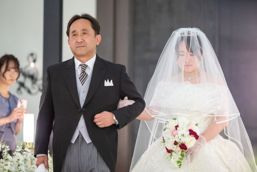 A様はお父様とゆっくりバージンロードを歩まれ