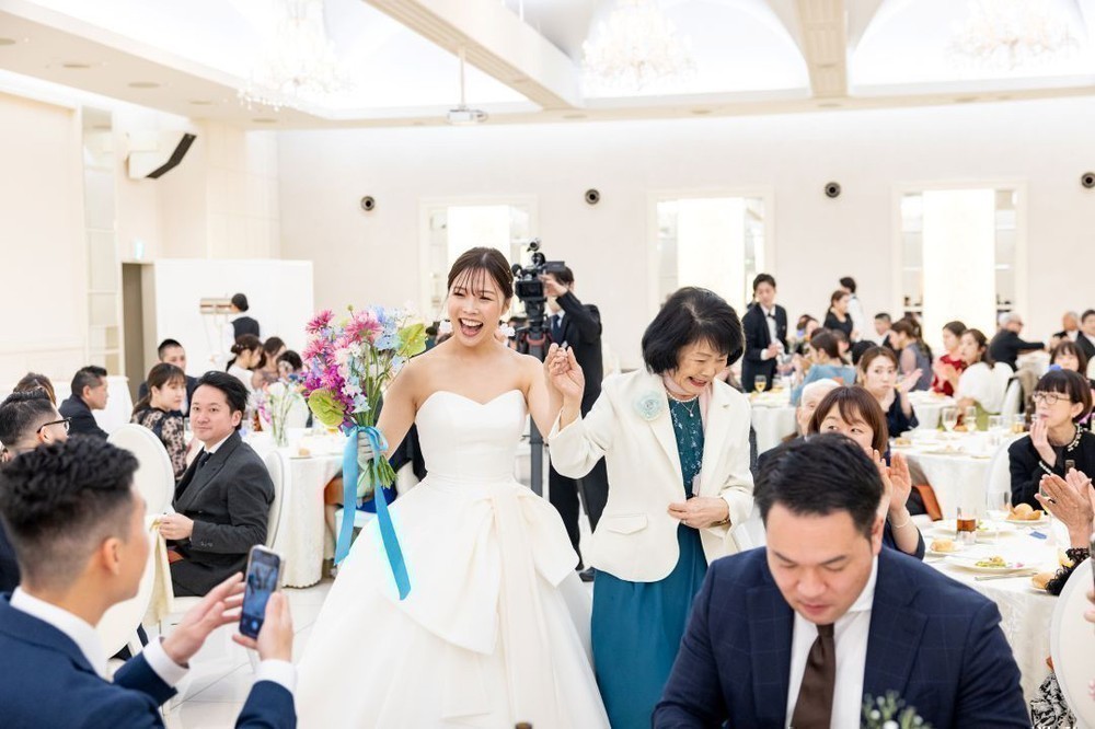 退場の際はたくさんの祝福を受けて、とても幸せそうな様子でした。