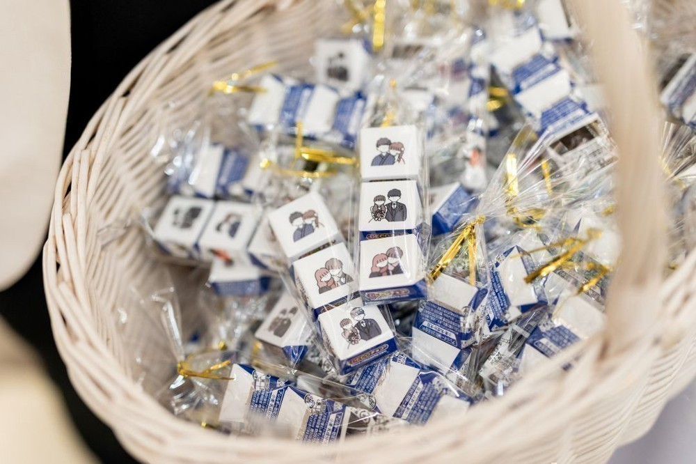 お見送りの際は、おふたりのイラストが入ったチョコをプチギフトとして渡されました。