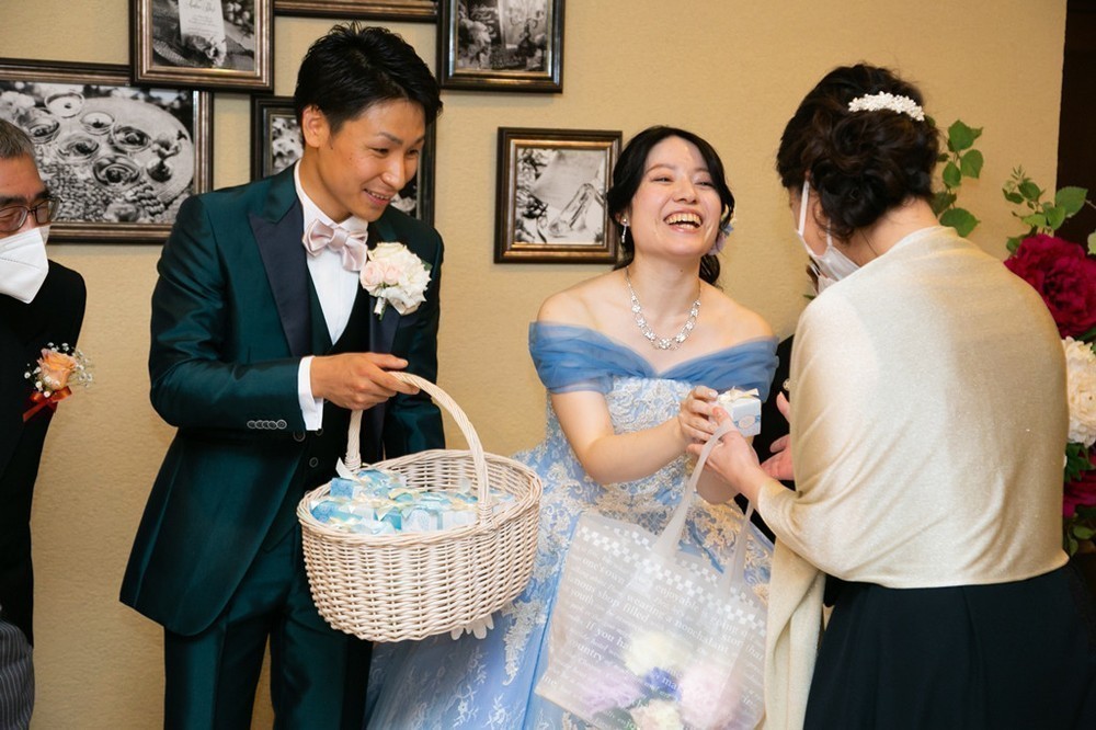 ゲストをお見送りする際の、プチギフトもブルーで統一されました。