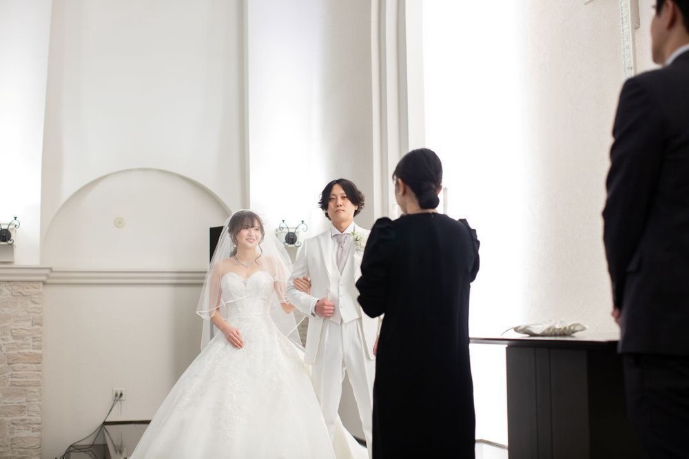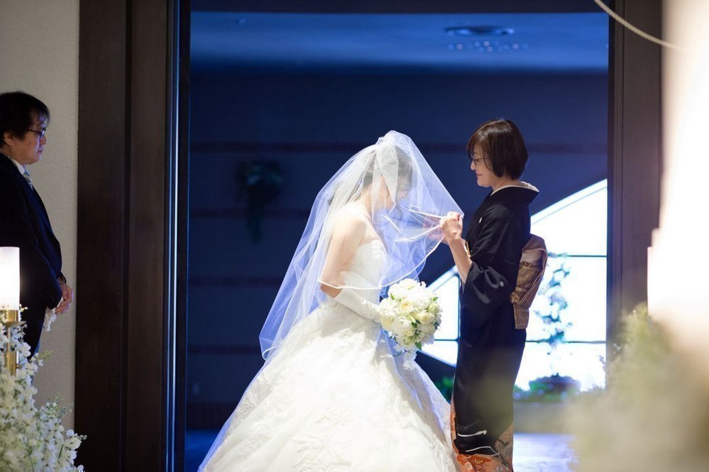 ユウ様が入場の際、お母様よりベールダウンを行っていただき