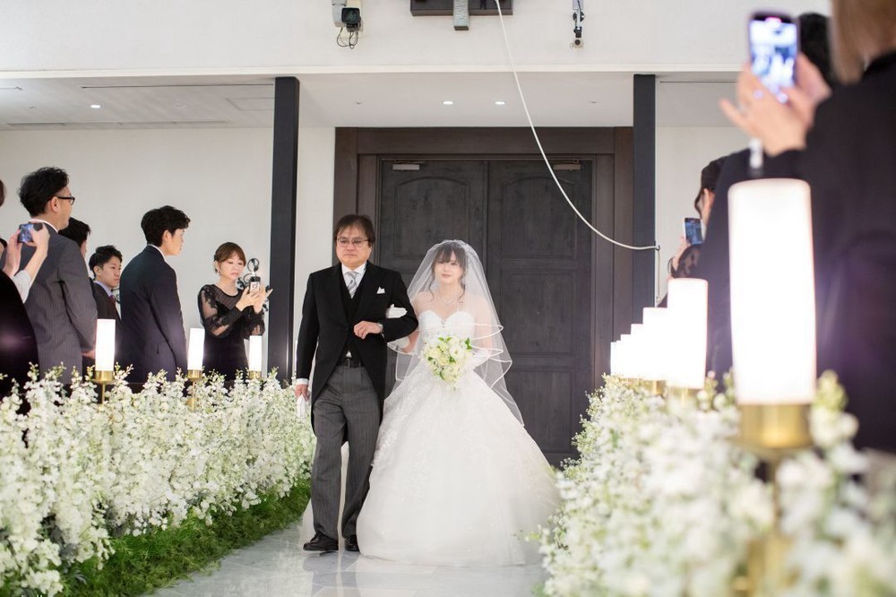 お父様とゆっくりバージンロードを歩まれました。