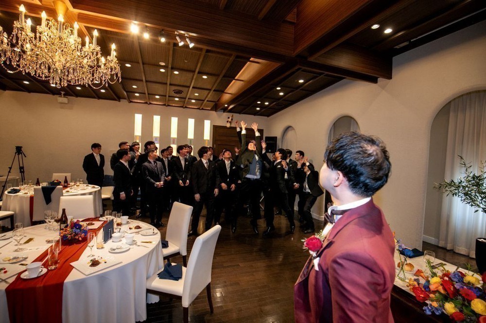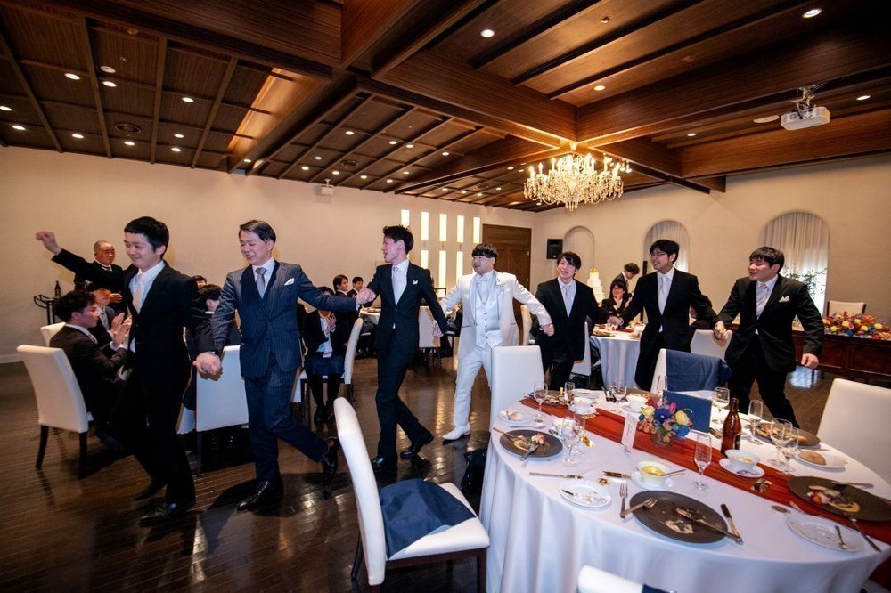 新郎様はご友人6名と仲良く手を繋いで退場されました。