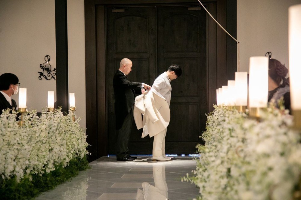 入場の際、新郎様はお父様よりジャケットセレモニーを
