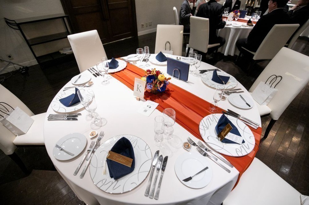 会場内のコーディネートも、テーマカラーの「テラコッタ&ターコイズブルー」に合わせ
