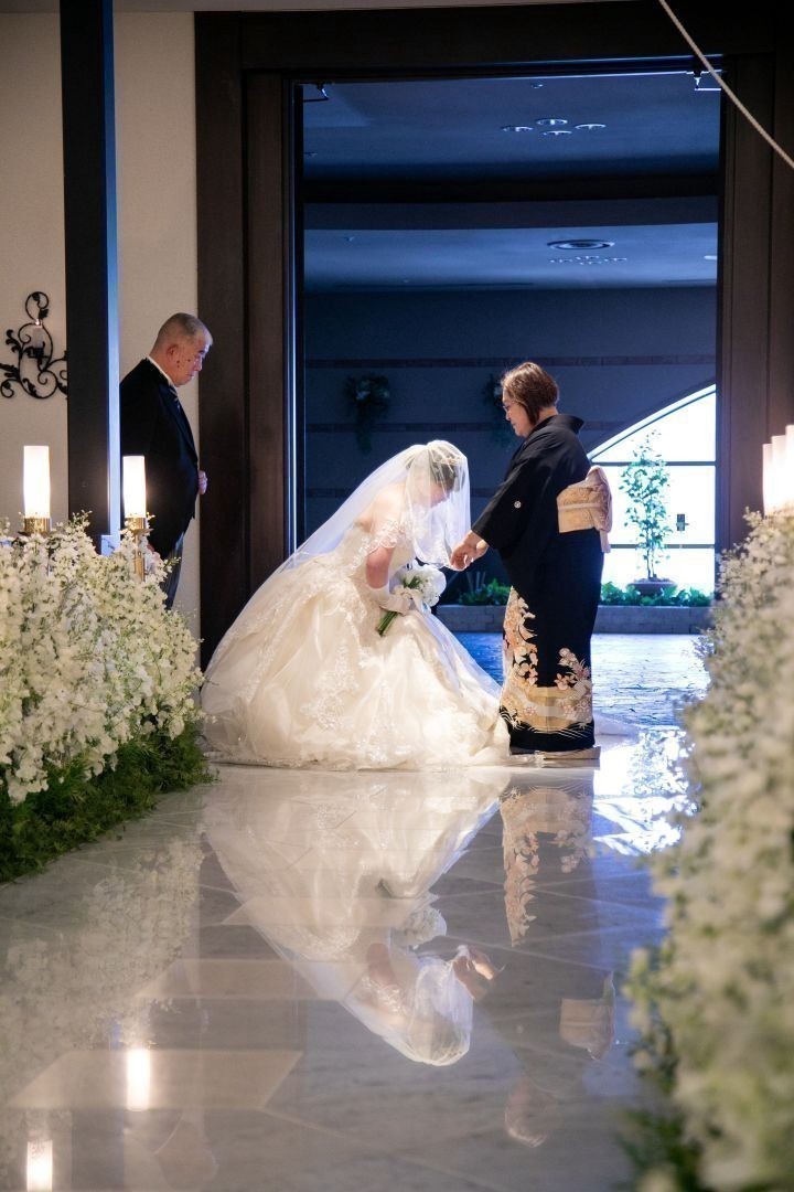 新婦様はお母様よりベールダウンセレモニーを行っていただきました。