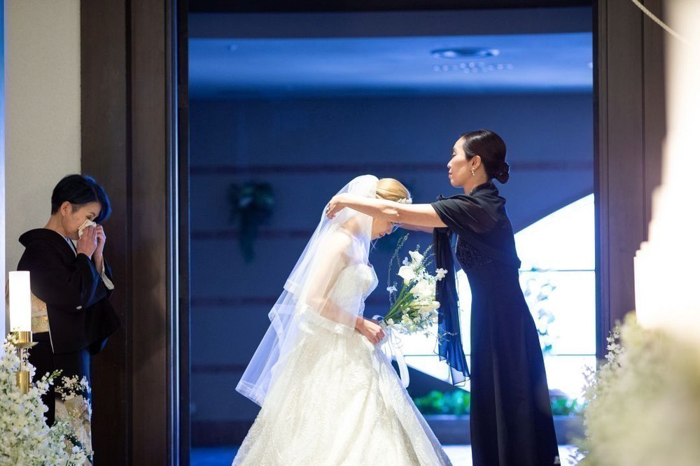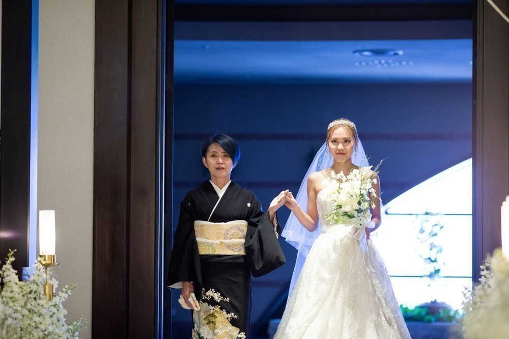 あいな様は、お母様のエスコートで入場され、ベールダウンはお姉様より。
