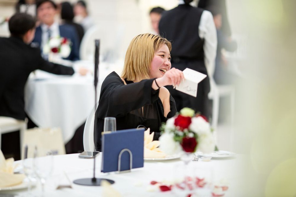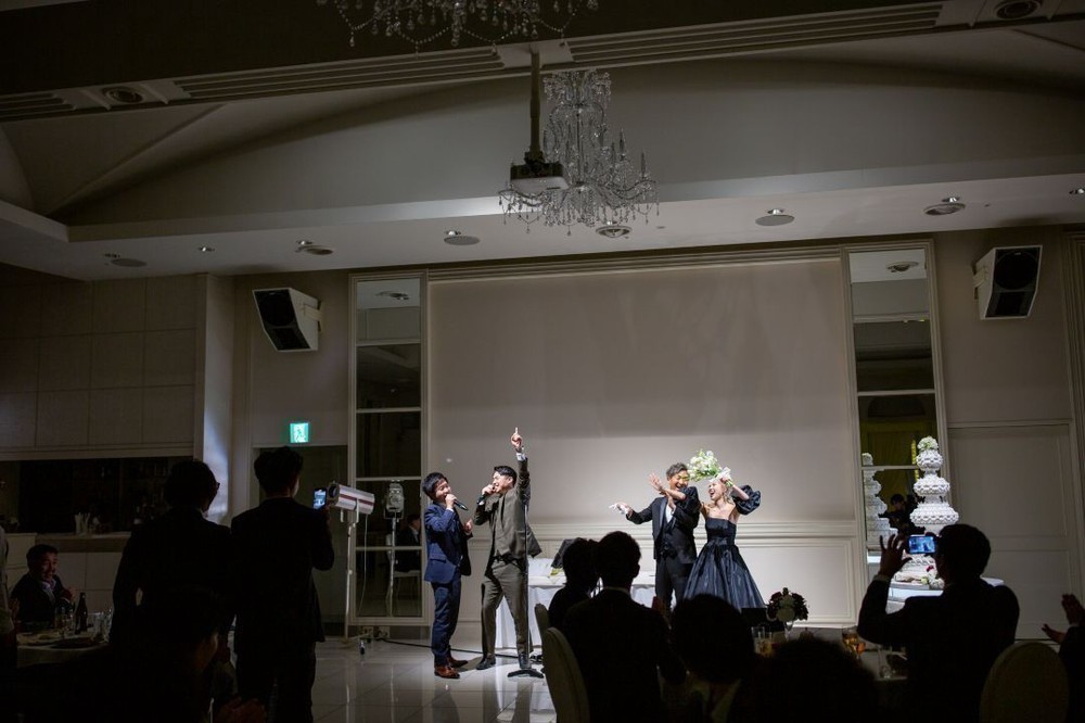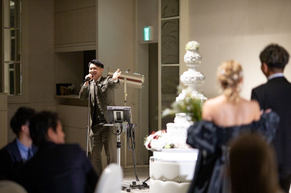 お色直し入場の際は、ゆうた様のご友人様に入場曲を歌っていただくおふたりからのサプライズが。