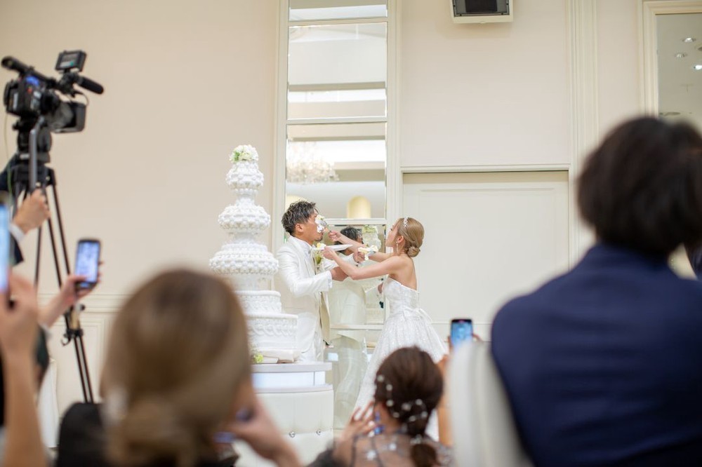 会場の注目が集まる中、あいな様からゆうた様へのひと口はなんと豪快に!