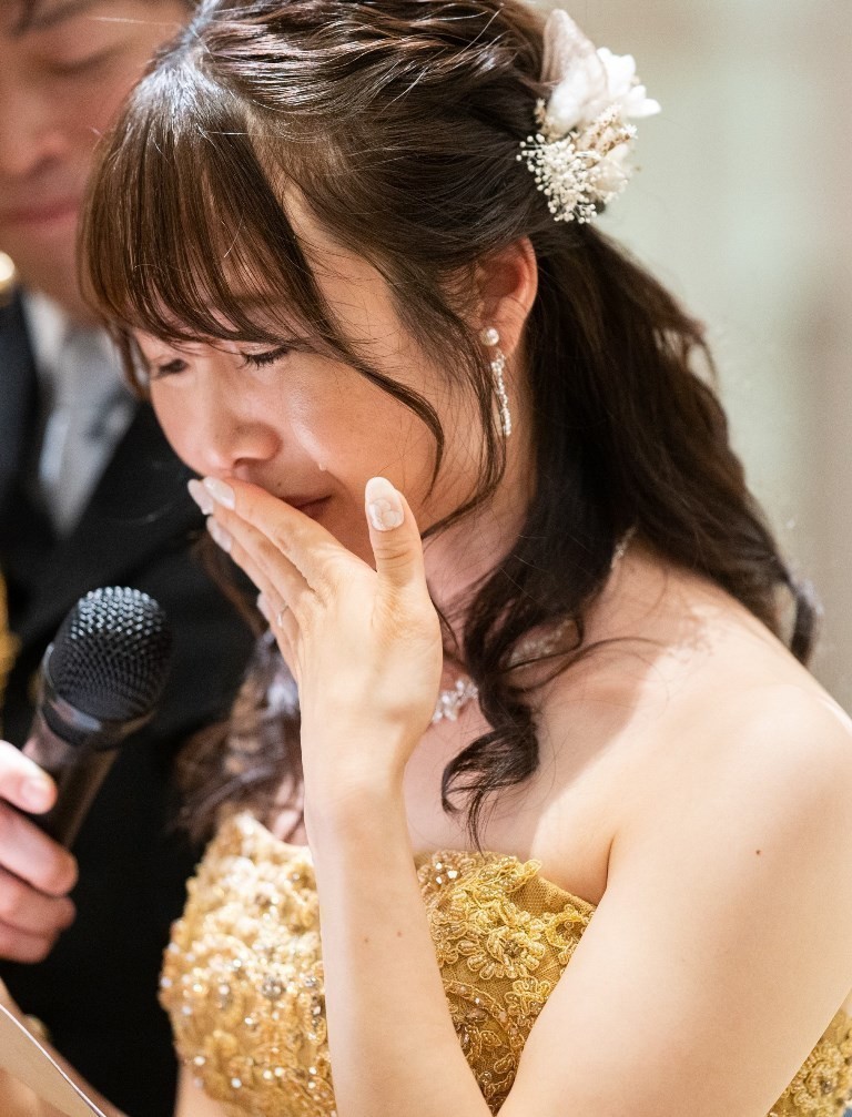 気持ちが溢れ思わず涙する梨江様。隆様もそのお気持ちに寄り添い、優しくサポートなさる姿が印象的です。