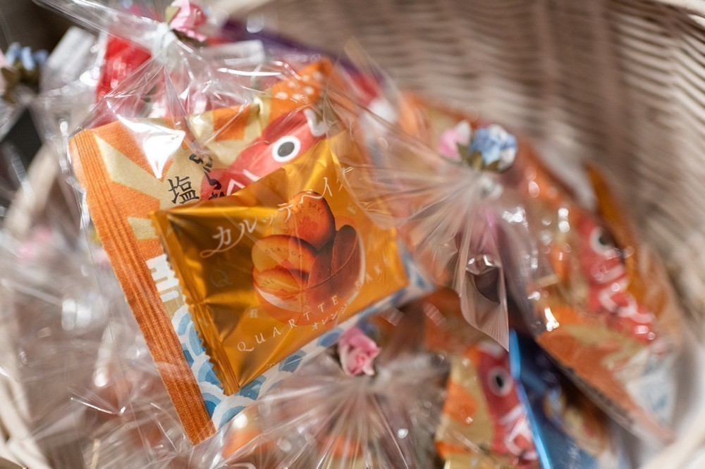 ゲストをお見送りする際のギフトには、おふたりが選んだお持ち込みのお菓子をご用意。