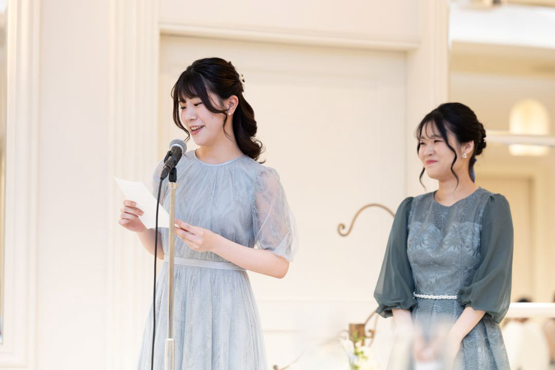 スピーチはおふたりのご友人より、それぞれ祝福のメッセージが贈られました。