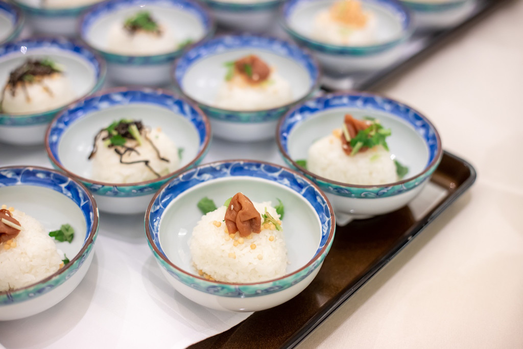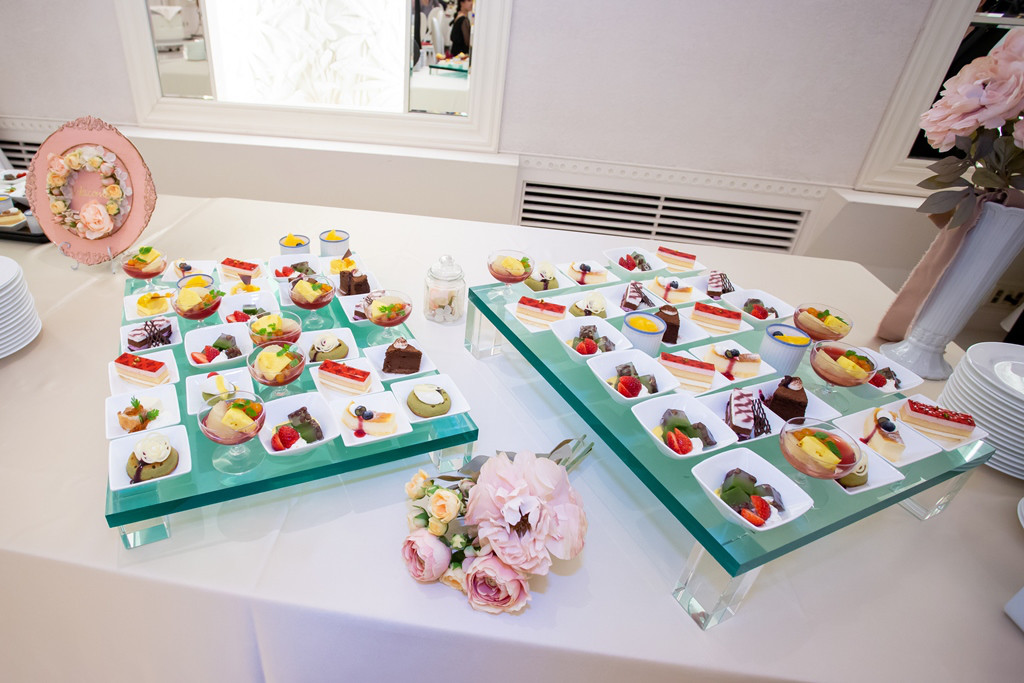 随所にゲストの皆様と一緒に楽しむ工夫を凝らした演出が続く中、デザートビュッフェとお茶漬けビュッフェが実施され、披露宴は結びへと続きます。