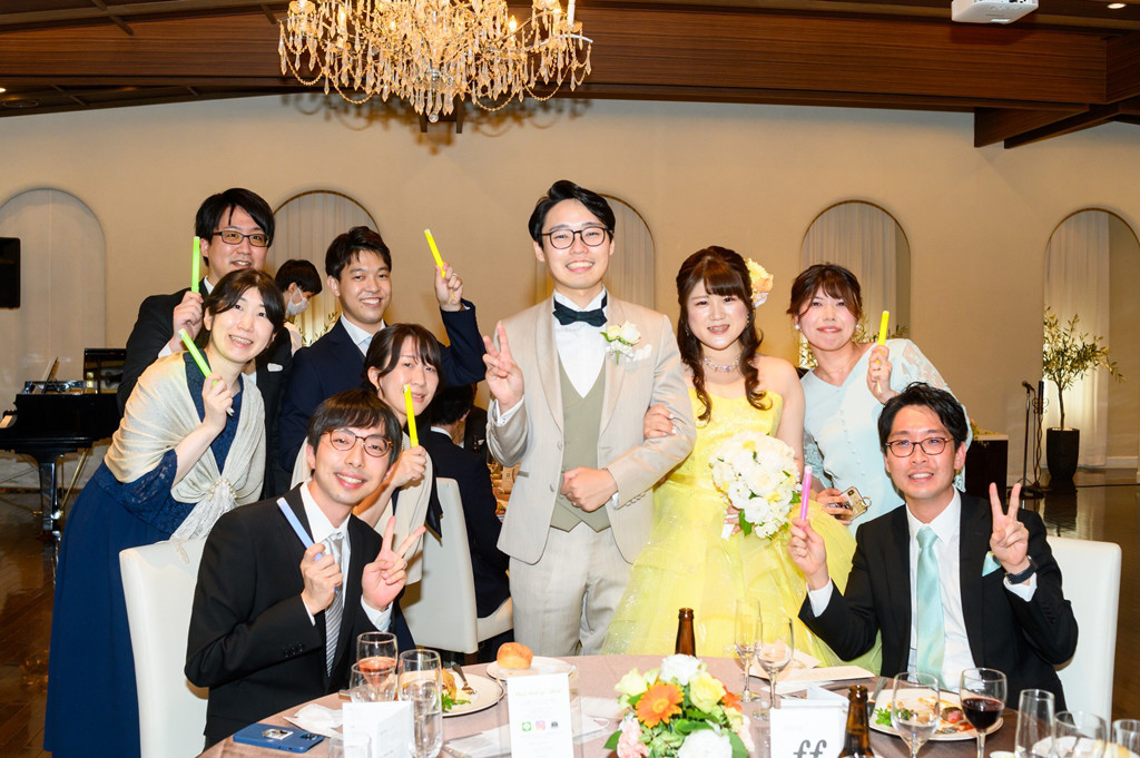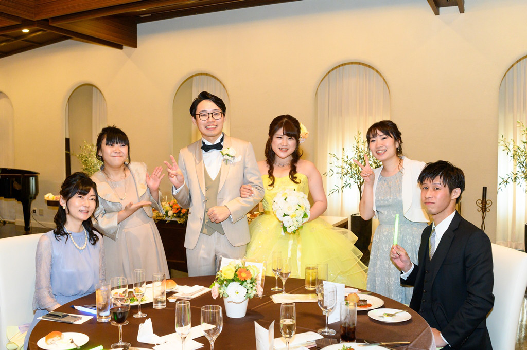入場後は各テーブルをまわり、ゲストとの記念撮影を楽しまれたおふたり。